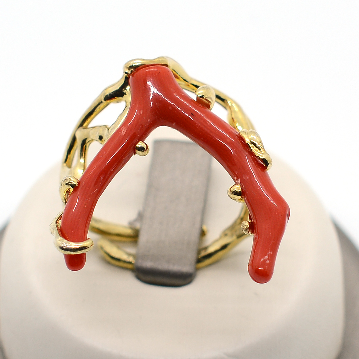 anello in argento ramo in corallo singolo peso gr 9.5