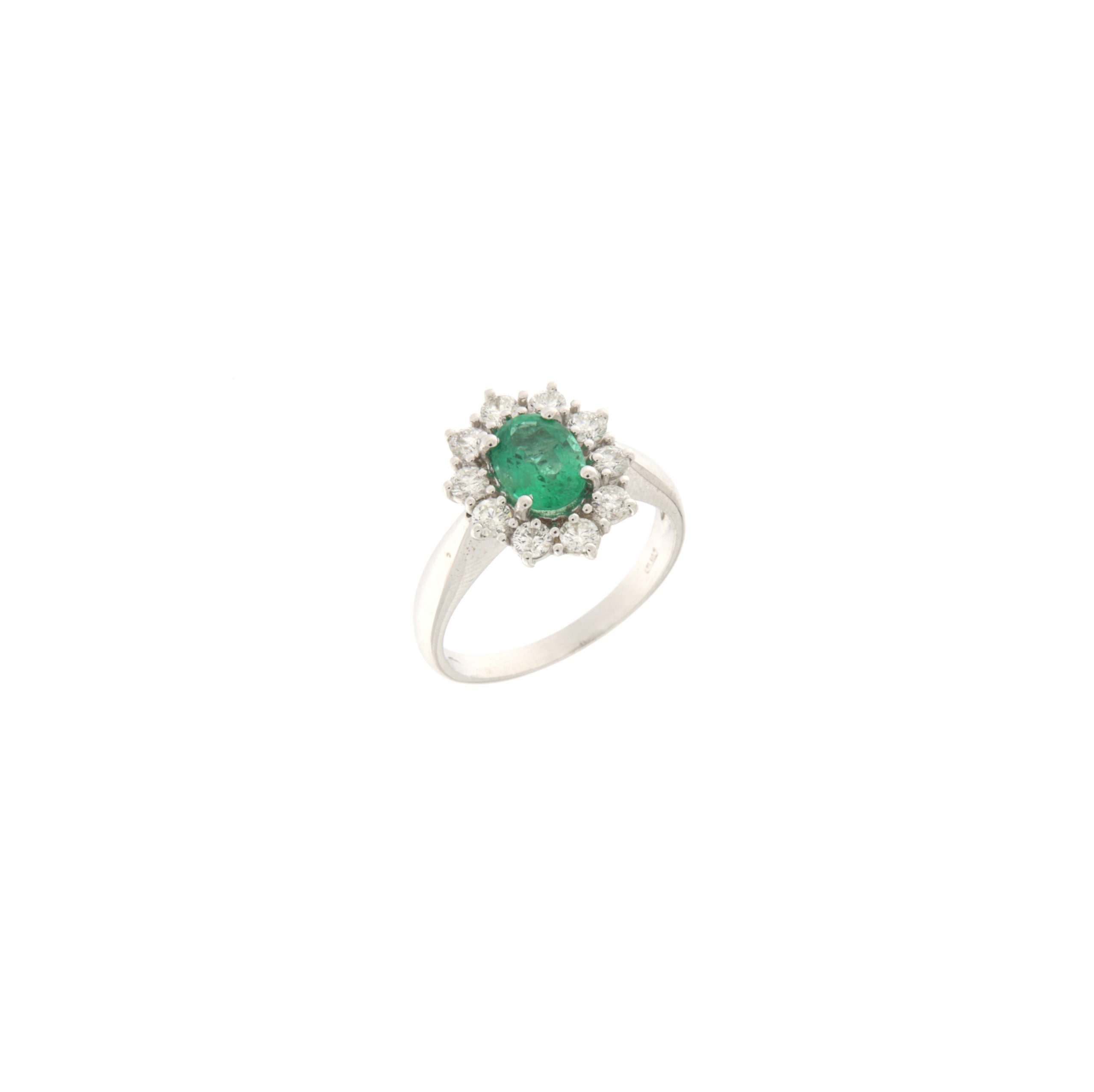 anello smeraldi 7punti 6×8 oro 18 kt gr.4,9 smer.1,60 kt bt 0,98 vsifcolor