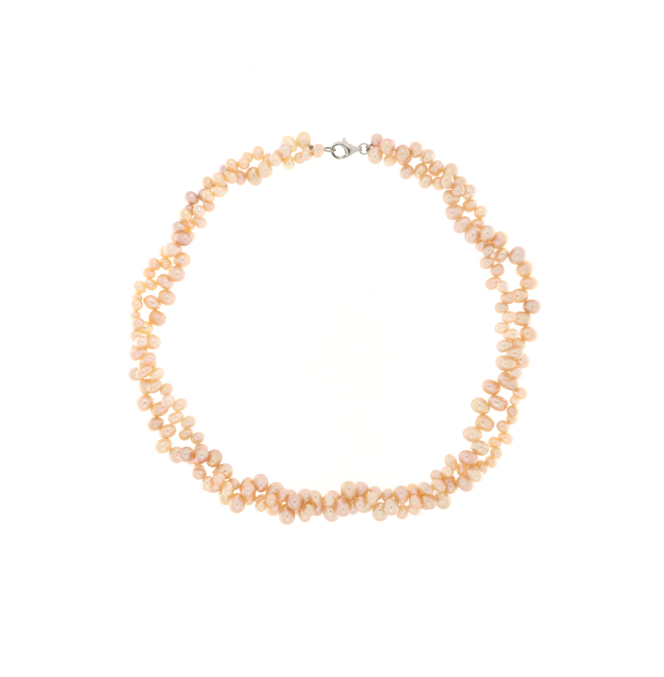 collana bifilo di perle rosa irregolari con chiusura in argento