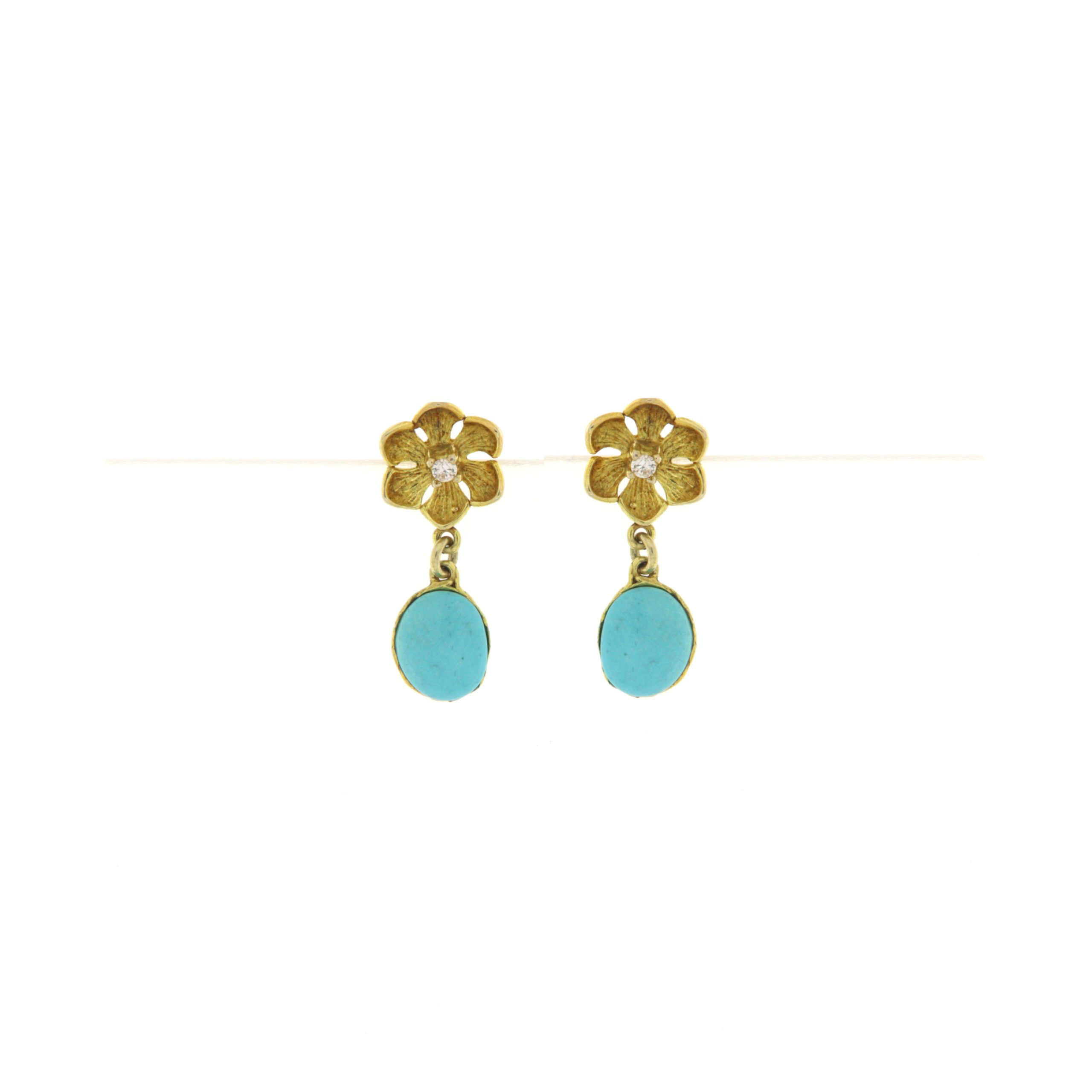 orecchini con fiore dorato e turchese