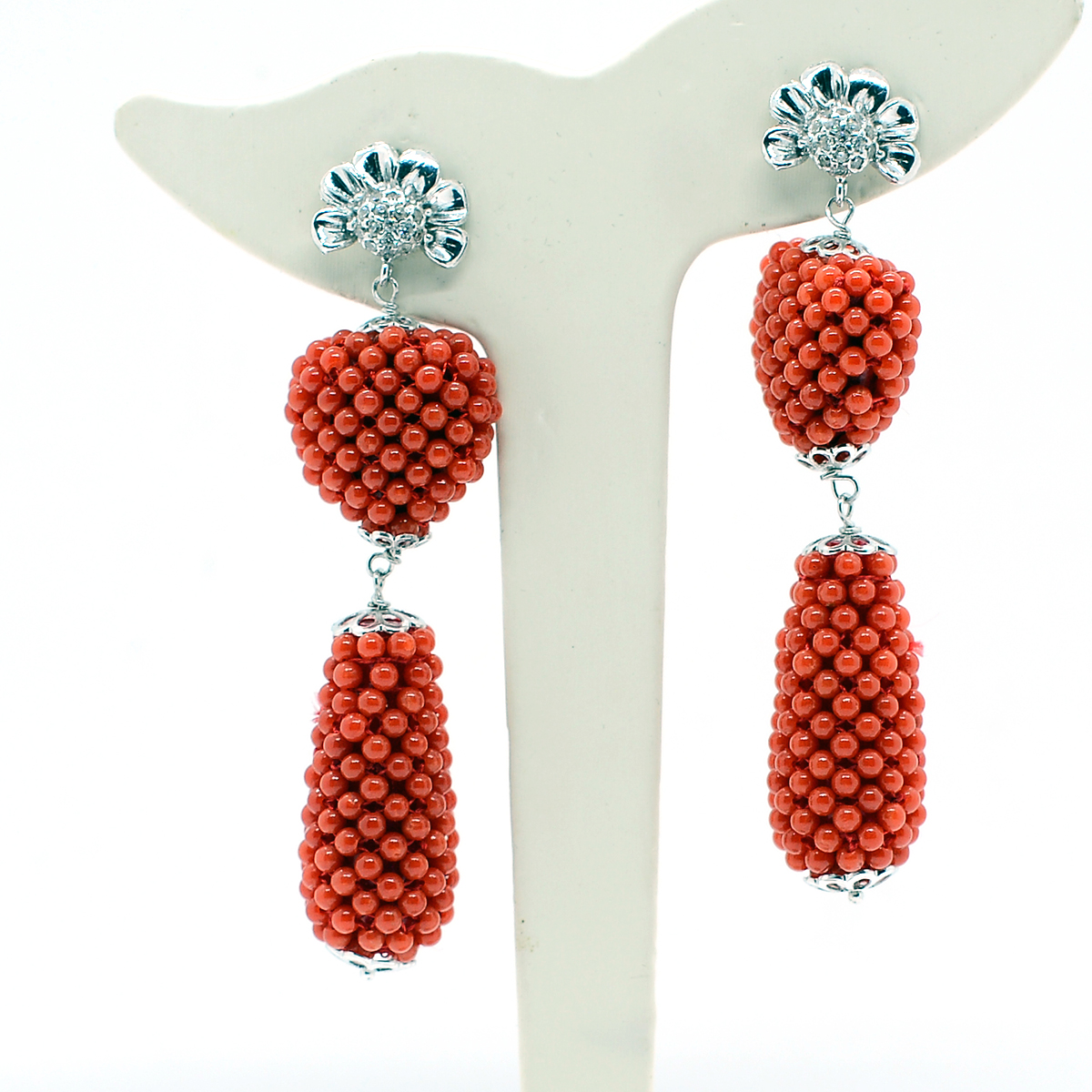 orecchini in corallo lavorazione in tessito ed in argento