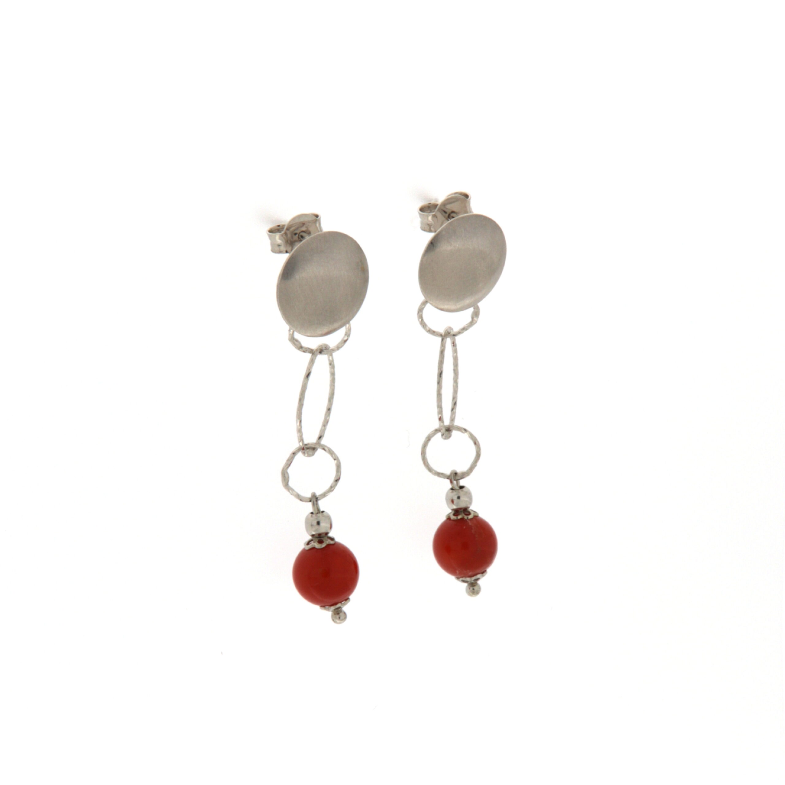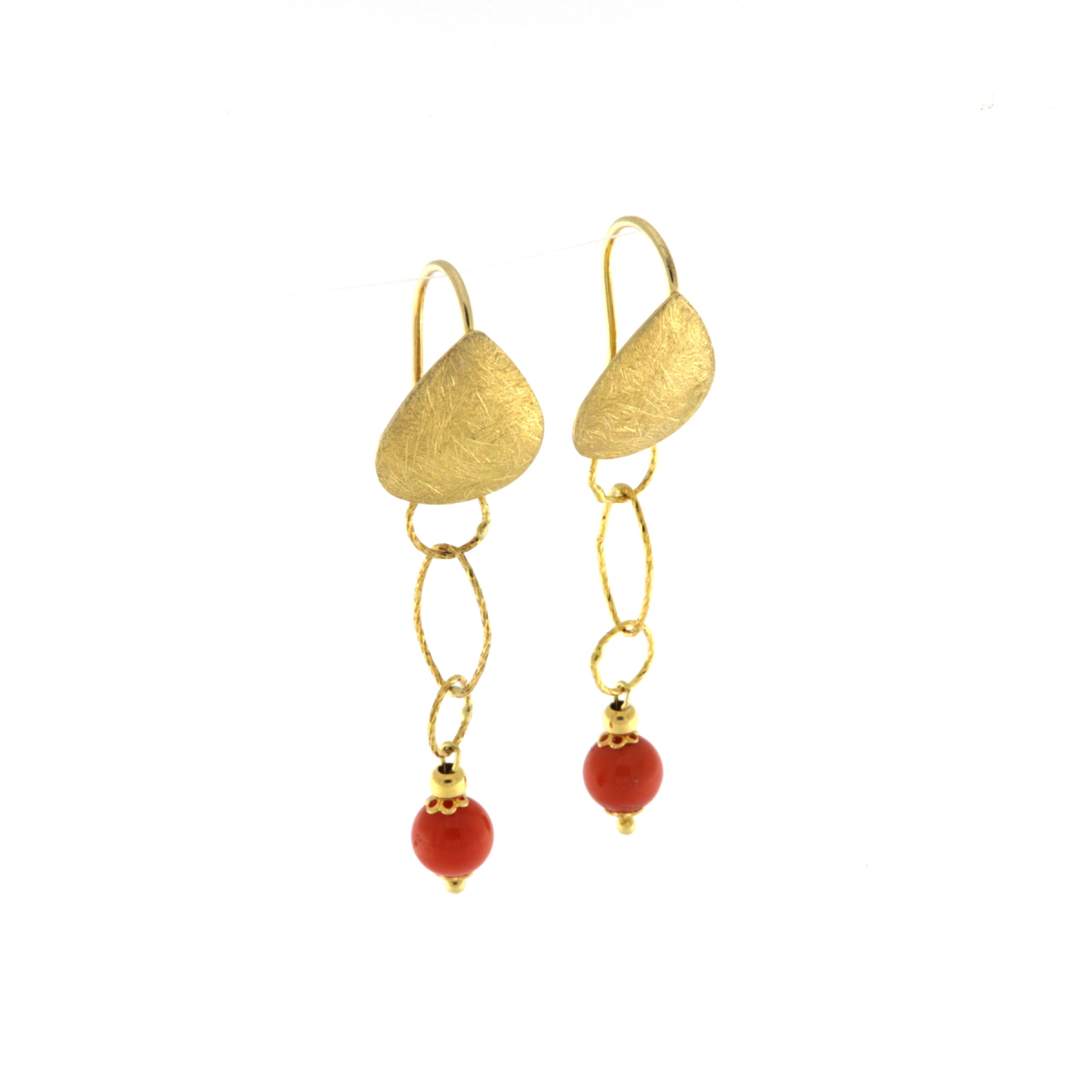 Orecchini in argento/argento con placcatura oro , catena pendente con sfera di corallo