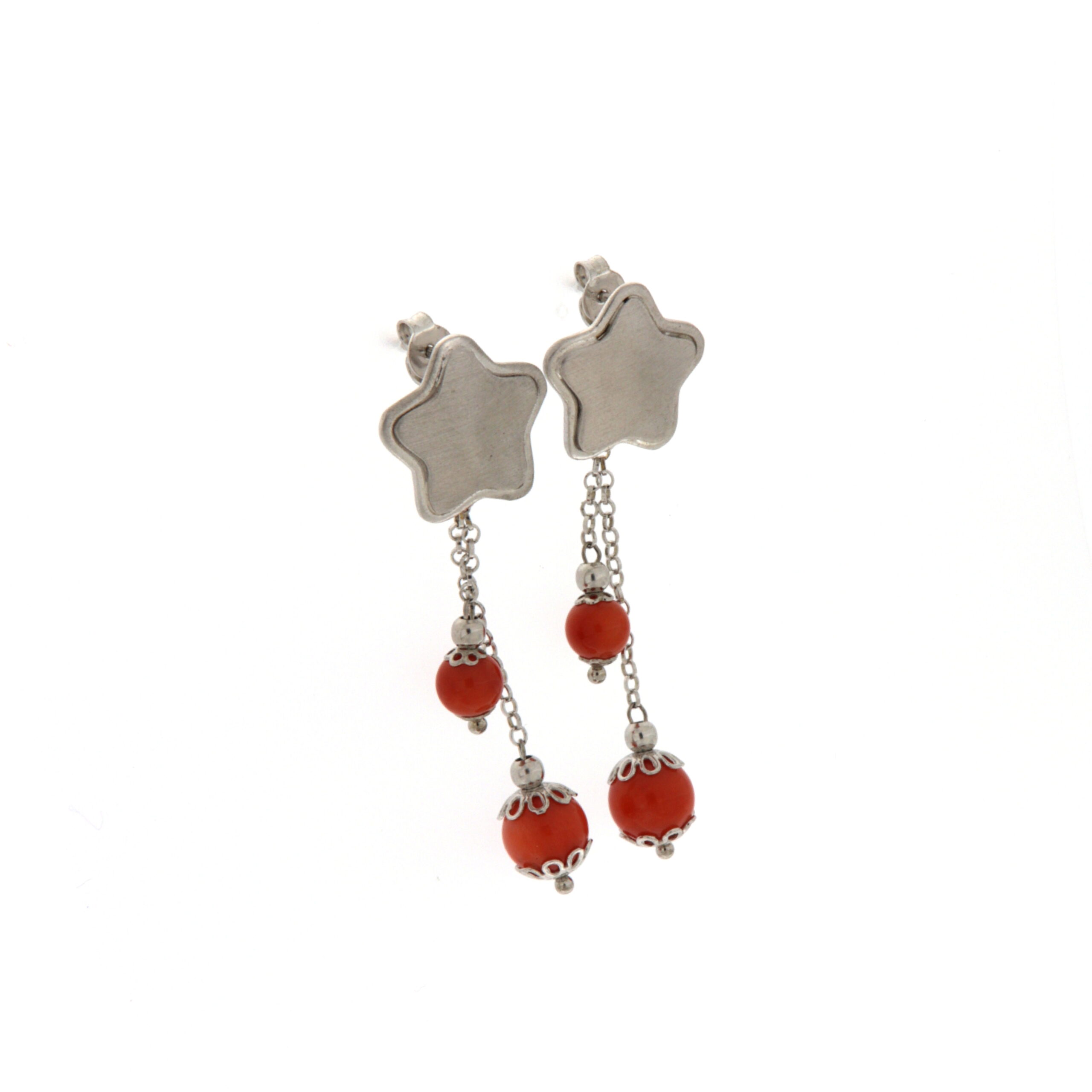 Orecchini pendenti a forma di stella in argento e pendenti in corallo